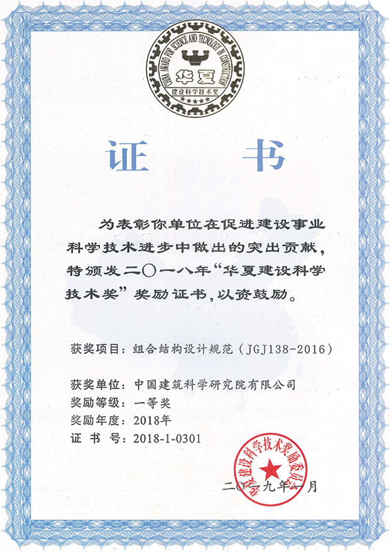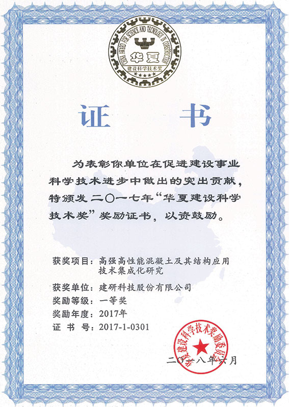 華夏建設(shè)科學(xué)技術(shù)獎一等獎