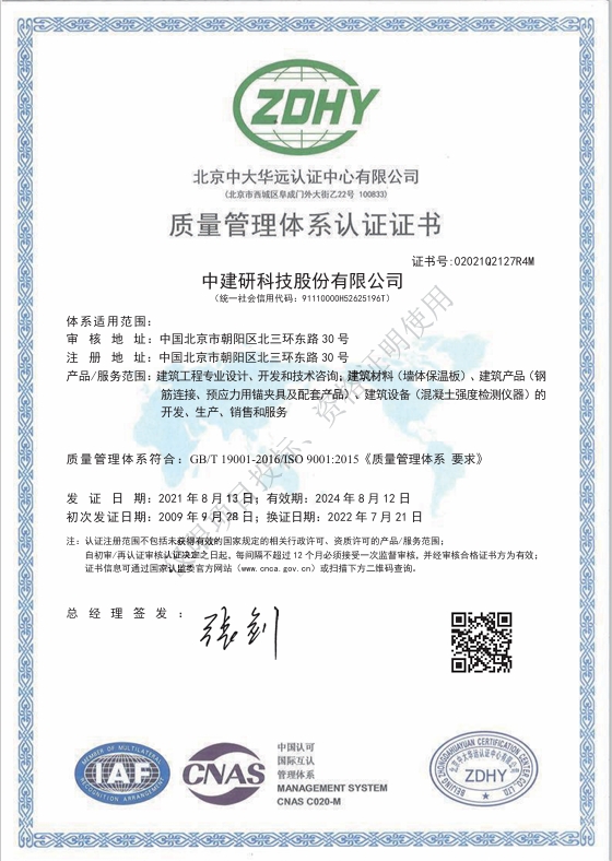 質(zhì)量管理體系認(rèn)證證書