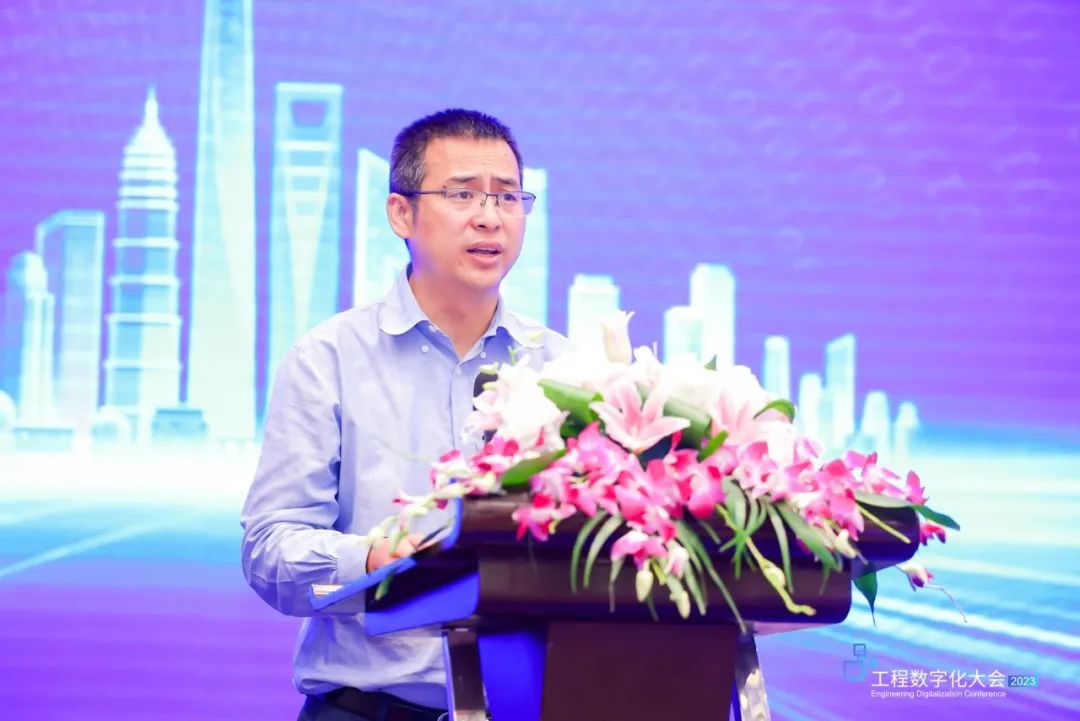 中國中鐵股份有限公司BIM研發中心主任董鳳翔以《鐵路行業工程數字化落地應用特邀報告》為題,從應用實踐和認識思考兩個方面介紹中國中鐵工程數字化進展及未來思考。在未來,中國中鐵將規劃聯合合作伙伴推動共建自主可控、共享共贏工程數字化生態。