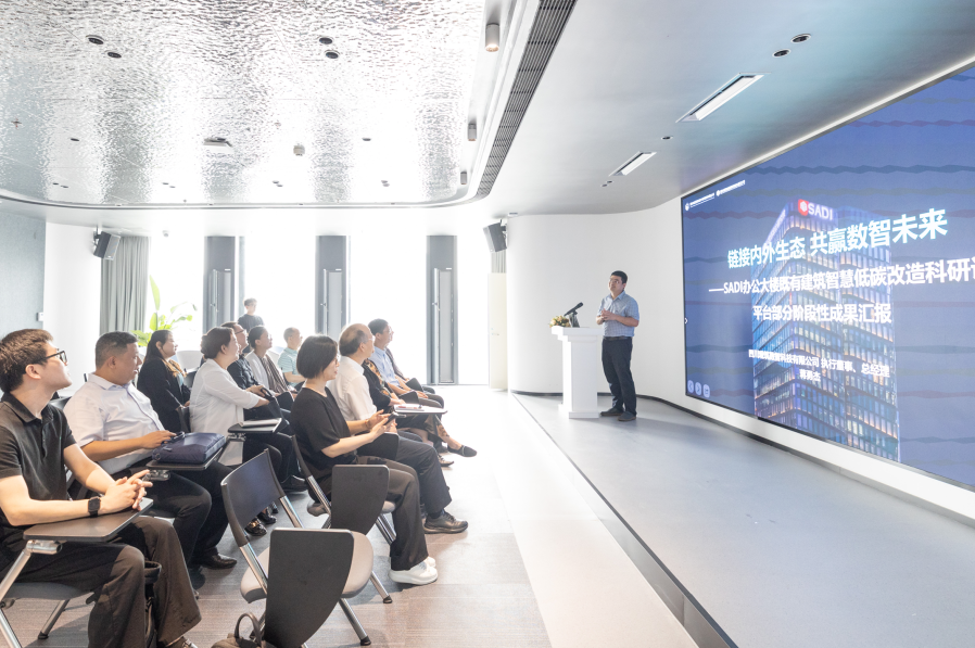 會前,馬恩成一行參觀了SADI樓頂創(chuàng)意園和企業(yè)文化中心。會后,參會人員參觀了SADI自主研發(fā)的智慧樓宇系統(tǒng)。