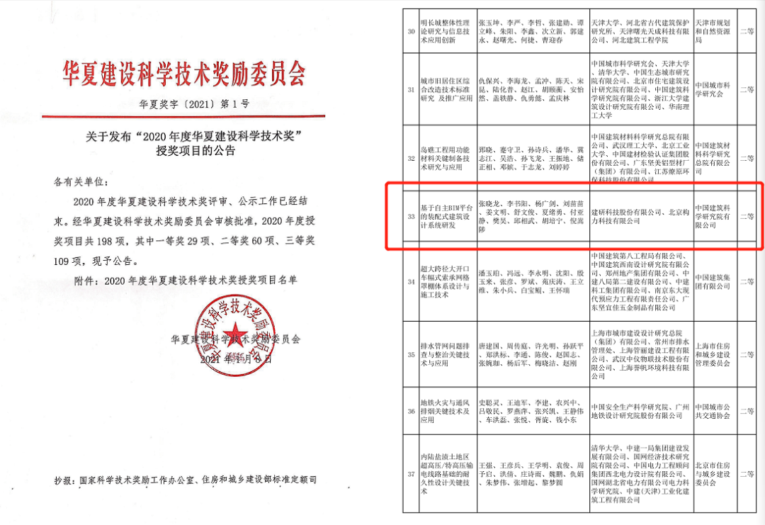 2020年度華夏建設科學技術獎獲獎名單,