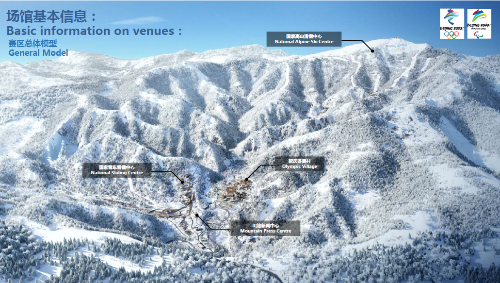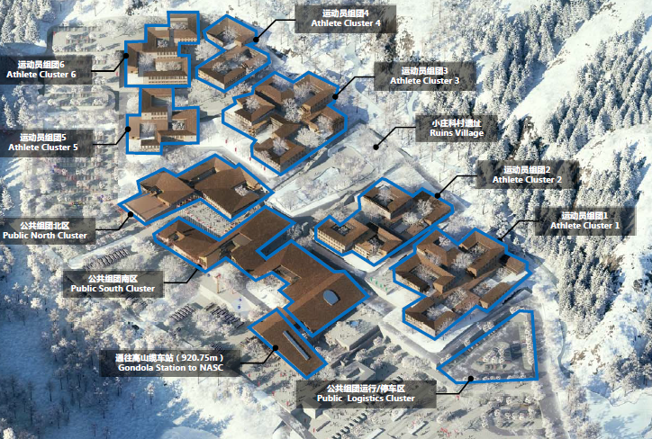 延慶冬奧村位于延慶賽區核心區南區東部,緊鄰賽區安檢廣場和山下纜車站,地處海坨山腳下是一塊相對平緩的臺階式坡地。