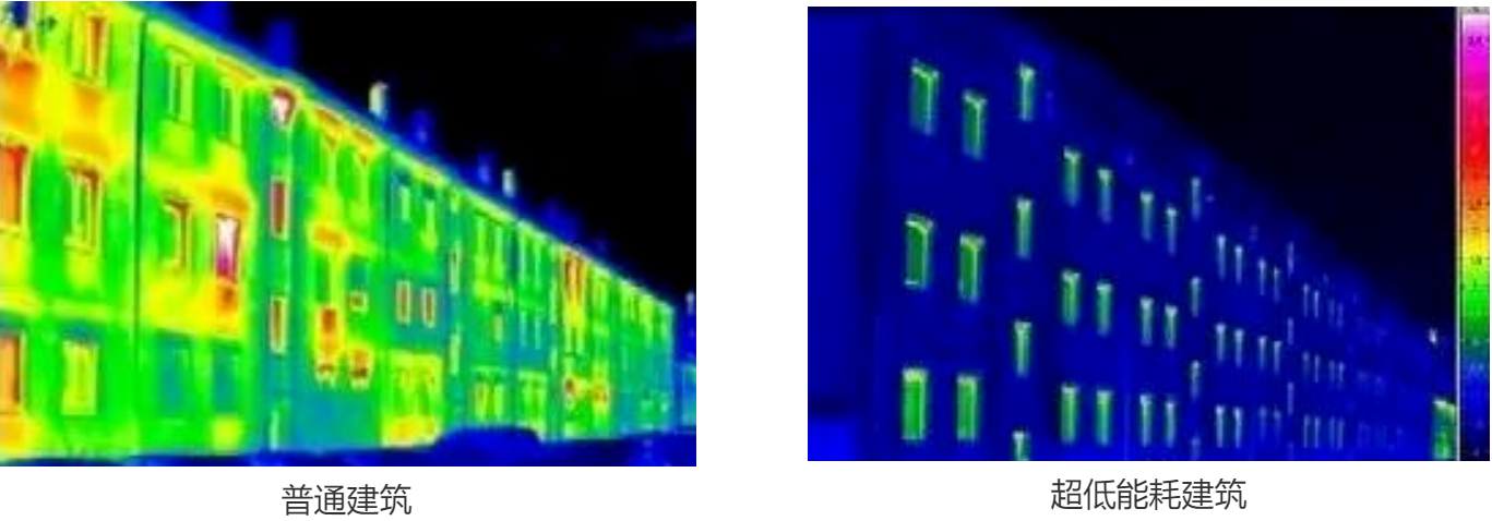 上圖為普通建筑與超低能耗建筑在紅外線狀態下熱成像對比,通過幕墻團隊不斷的方案比選,最終實現了科技與自然的和諧共生。