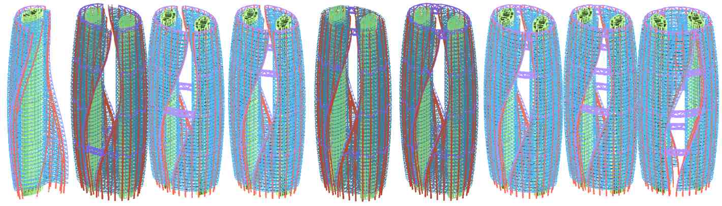 優(yōu)美獨特的扭轉(zhuǎn)建筑造型為結(jié)構(gòu)設(shè)計帶來巨大挑戰(zhàn)。為解決工程中的若干重點和難點問題,業(yè)主委托我公司工程咨詢設(shè)計院完成了一系列研究和咨詢工作。