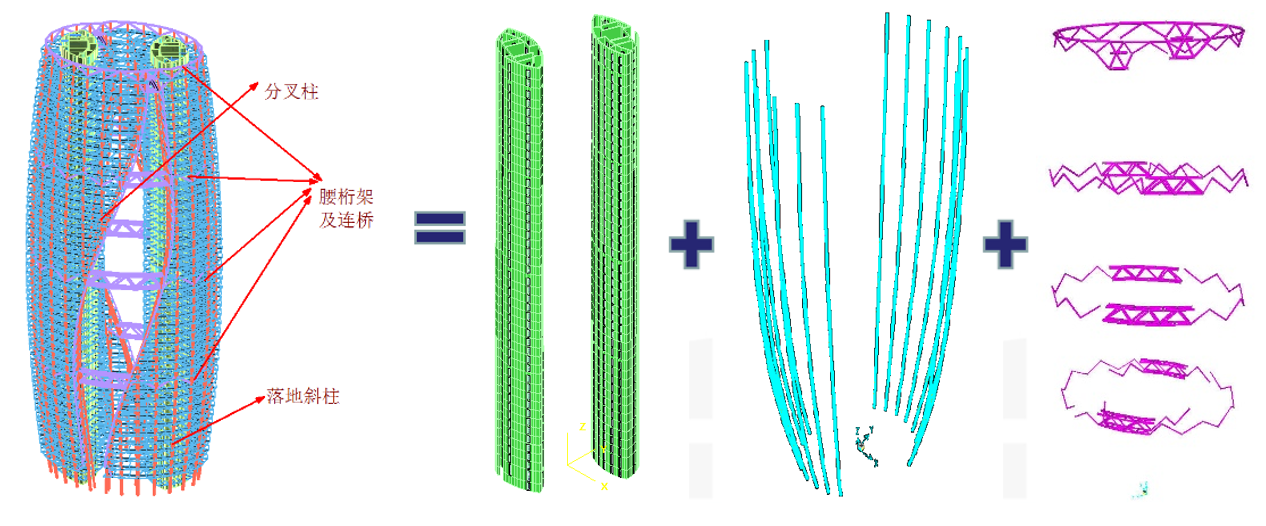 項目組同時進行了施工模擬分析、連續(xù)倒塌分析、彈塑性有限元分析并配合施工圖單位完成了BIM建模,還針對施工中復雜的構(gòu)造要求、特殊做法等,完成了施工圖及施工顧問工作。