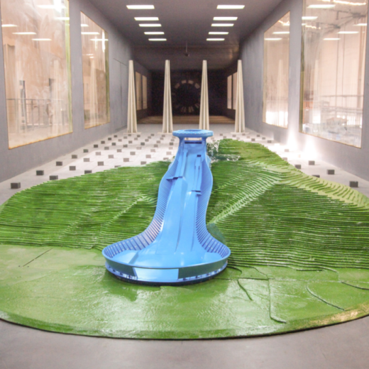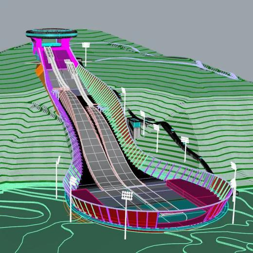 此外,風(fēng)工程團(tuán)隊(duì)還完成了國(guó)家跳臺(tái)滑雪中心項(xiàng)目的風(fēng)洞試驗(yàn)。該項(xiàng)目是北京冬奧會(huì)張家口賽區(qū)工程量最大、技術(shù)難度最高的競(jìng)賽場(chǎng)館,也是我國(guó)首座跳臺(tái)滑雪場(chǎng)館。頂部與底部落差達(dá)160多米,外形好似中國(guó)古代象征吉祥的擺件——如意,因此得名“雪如意”。由于周邊山地影響,該項(xiàng)目的風(fēng)荷載計(jì)算非常復(fù)雜。風(fēng)工程團(tuán)隊(duì)承擔(dān)了風(fēng)洞試驗(yàn)和風(fēng)振計(jì)算,為設(shè)計(jì)方提供了準(zhǔn)確的風(fēng)荷載計(jì)算取值依據(jù)。