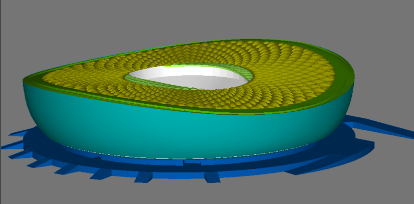 盧賽爾城當(dāng)?shù)?s陣風(fēng)基本風(fēng)速為38m/s,風(fēng)工程團(tuán)隊(duì)在風(fēng)洞中制作了1:250的模型,按照ASCE/SEI7-16和ASCE/SEI49-12的要求進(jìn)行了風(fēng)洞試驗(yàn)和相關(guān)數(shù)據(jù)處理,給出了36個(gè)風(fēng)向下風(fēng)壓系數(shù)分布以及50年重現(xiàn)期下極值壓力的統(tǒng)計(jì)值。根據(jù)風(fēng)洞試驗(yàn)數(shù)據(jù),對(duì)盧塞爾體育場(chǎng)的風(fēng)振響應(yīng)進(jìn)行了分析,并提供了50年一遇的等效靜風(fēng)荷載。夏馬風(fēng)是中亞及波斯灣一帶一種強(qiáng)烈的西北風(fēng),通常會(huì)產(chǎn)生大型沙塵暴。夏馬風(fēng)可能會(huì)將地面沙塵卷入空中并在體育場(chǎng)屋面發(fā)生沉積。風(fēng)工程團(tuán)隊(duì)使用CFD軟件對(duì)盧塞爾體育場(chǎng)周圍的風(fēng)沙運(yùn)動(dòng)進(jìn)行了全尺度數(shù)值模擬,獲得了屋面上的積沙分布情況。