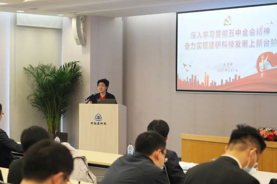 同時,按照院黨委2021年“五個突出、五個新”的工作部署,結合建研科技實際,從謀劃好“十四五”規(guī)劃、國企改革三年行動、提升自主創(chuàng)新能力、強化市場經(jīng)營能力、深化拓展從嚴治黨五個方面17個重點進行相應部署,力爭把五中全會精神落到實處。