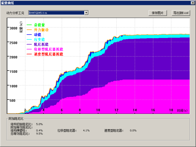 通過能量圖得到阻尼器總耗能為1191.47kJ,結構初始阻尼耗能為1455.66kJ,計算阻尼器附加阻尼比為:
