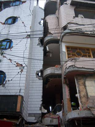 圖1 ?2008年汶川地震,相鄰建筑的碰撞破壞實例(1)
