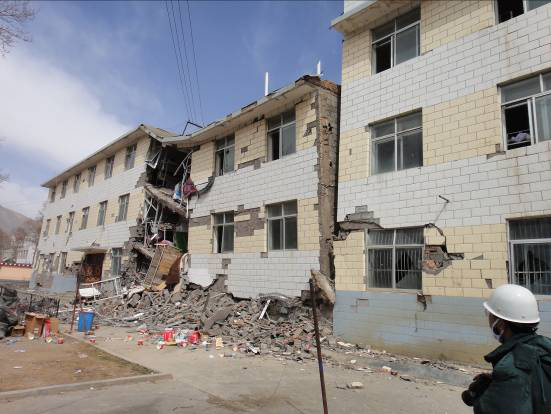 圖4 ?2010年玉樹地震,玉樹州綜合職業技術學校兩棟學生公寓樓的碰撞破壞情況