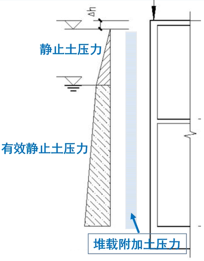 尚應考慮地面堆載產(chǎn)生的附加土壓力,地面堆載應按實際情況考慮,一般不小于5kN/㎡