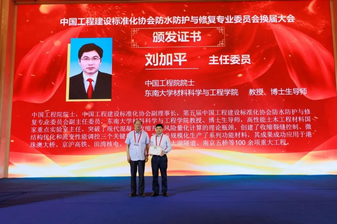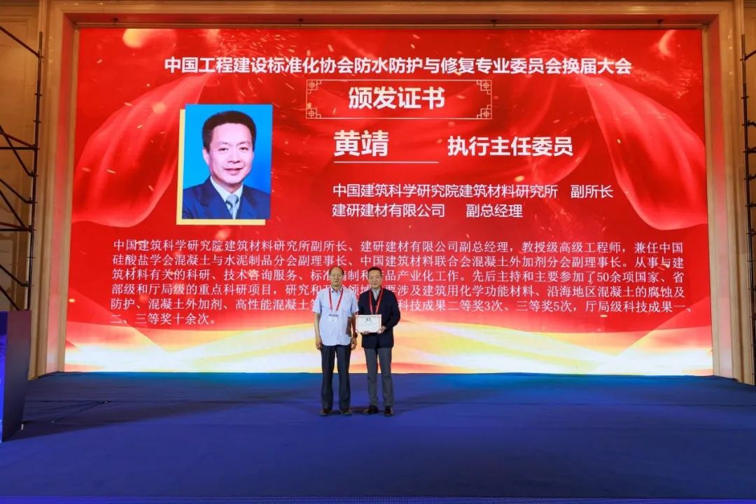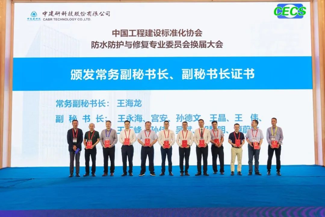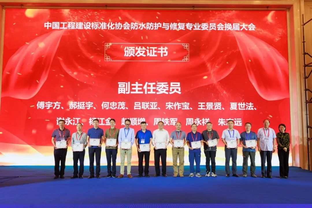 恰逢中國工程建設標準化協會防水防護與修復專業委員會換屆,委員會常務副秘書長王海龍通報了換屆會議相關情況。大會共選舉產生第六屆委員會218名委員,選舉劉加平院士為第六屆委員會主任委員,黃靖為執行主任委員兼秘書長,傅宇方、郝挺宇、何忠茂、呂聯亞、宋作寶、王景賢、夏世法、謝永江、楊江金、趙順增、周鐵軍、周永祥、朱志遠為副主任委員。