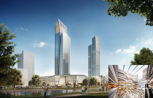 商業(yè)綜合體是將城市中商業(yè)、辦公、居住、旅店、展覽、餐飲、會議、文娛等城市生活空間的三項以上功能進行組合,并在各部分建立一種互相依存、互相裨益的能動關系,從而形成一個多功能、高效率、復雜而統(tǒng)一的綜合體。這類綜合體的設計需要滿足:高可達性、高密度集約性、整體統(tǒng)一性、功能復合性;而在內部空間設計中需要注意:大空間尺度、通道樹型交通體系、現(xiàn)代城市景觀設計、高科技集成設施等方面的應用。