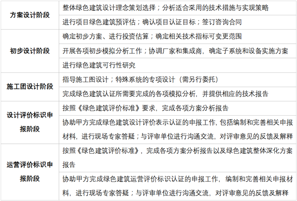 隨即開展的綠色建筑咨詢工作將與項(xiàng)目的設(shè)計(jì)工作進(jìn)程緊密結(jié)合。在方案設(shè)計(jì)階段將與業(yè)主展開廣泛交流以確定綠色建筑整體方案,如建筑冷熱源方案,可再生能源建筑利用方案等。在初步設(shè)計(jì)、擴(kuò)初設(shè)計(jì)及施工圖設(shè)計(jì)階段中,咨詢團(tuán)隊(duì)將與業(yè)主及設(shè)計(jì)單位緊密合作,以確保綠色建筑整體方案落到實(shí)處。