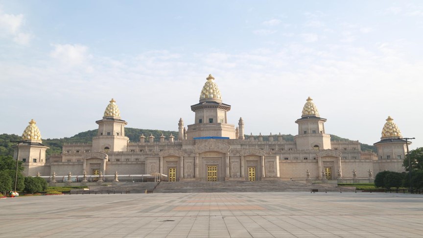 工作內容:設計施工一體化、施工全過程監測。梵宮采用退臺式建筑布局,以南北為軸線,東西對稱分布,建筑寬150m,進深180m,頂部為錯落有致的五座華塔,后側為曼陀羅形態的圣壇。