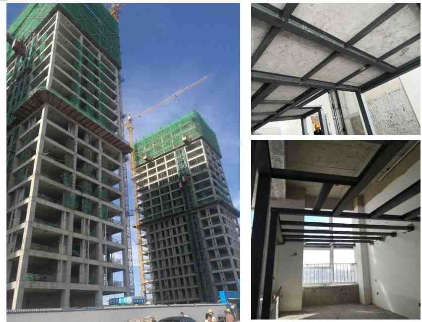 鋼結構夾層施工。LOFT夾層項目,建筑面積5萬㎡,層高5m,鋼梁為方管,樓板為24mm高強硅酸鈣板,結構層厚150mm。
