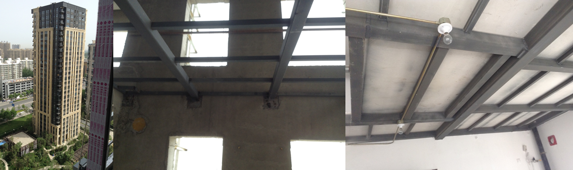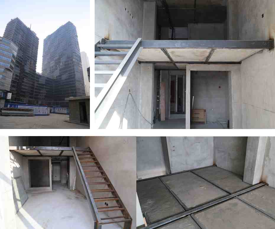 鋼結構夾層,共計17層夾層,為常規LOFT夾層施工,鋼梁形式為方鋼管,樓板為天基板。