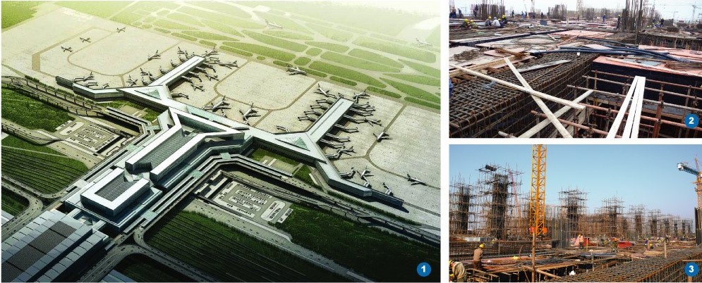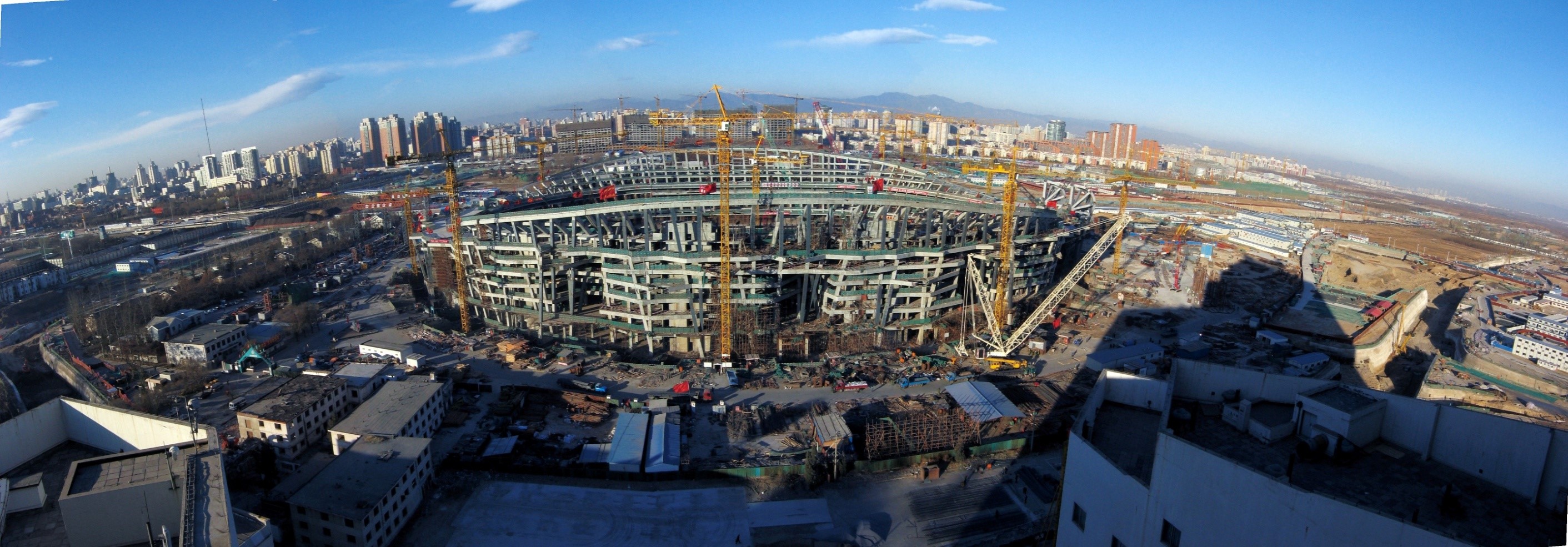 預應力施工。超長框架結構,最大跨度42.3m;采用有粘結預應力及連接器技術,解決了大跨度及預應力在結構中的連續性問題。