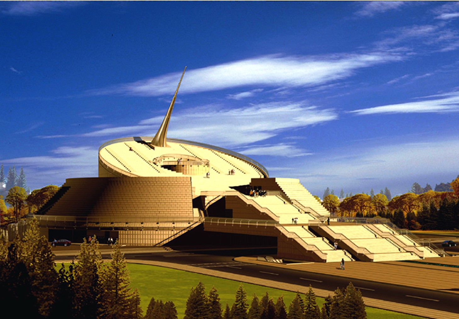 預應力設計與施工。主壇底部3層15m跨預應力環板;主壇前33m跨過街橋、甬道地下劇場22m跨框架均引入預應力技術。