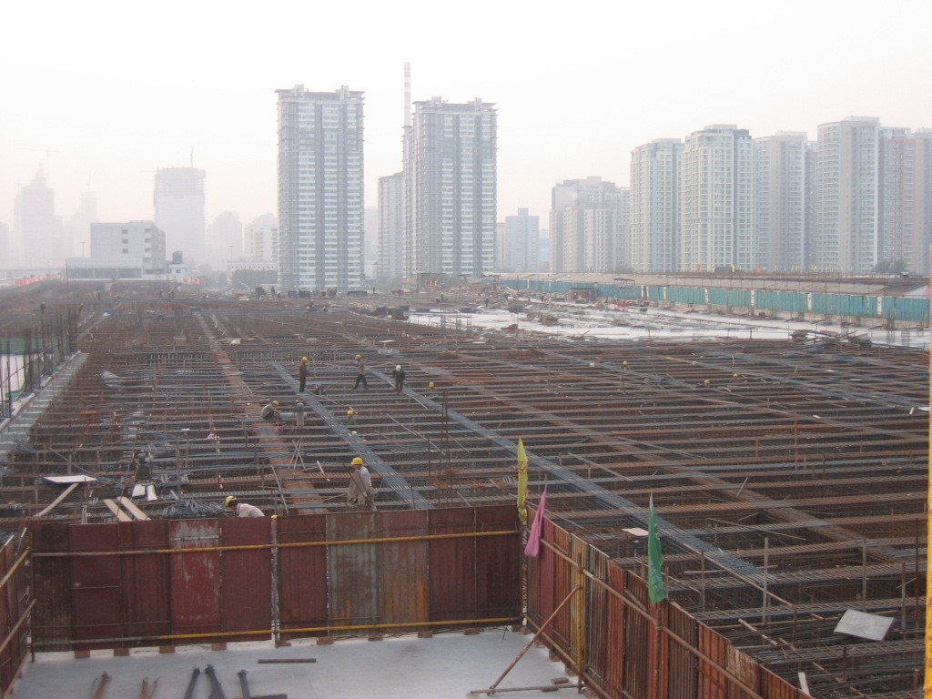 預應力設計及施工。大平臺框架主梁及次梁采用了無粘結及有粘結預應力技術,解決大跨重載問題,鋼絞線用量近2000t,完成預應力設計與施工。